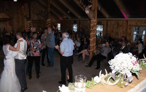 Keep your guests dancing on the large wooden dance floor. Then head outside through sliding doors leading to the patio and fire pit.