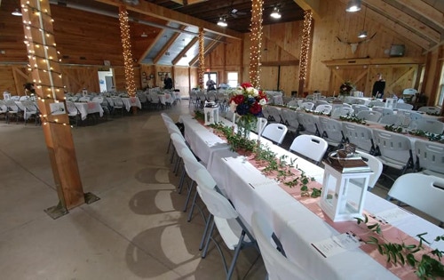 Rental of the facility includes tables and chairs (rectangular 8 foot tables and folding chairs).